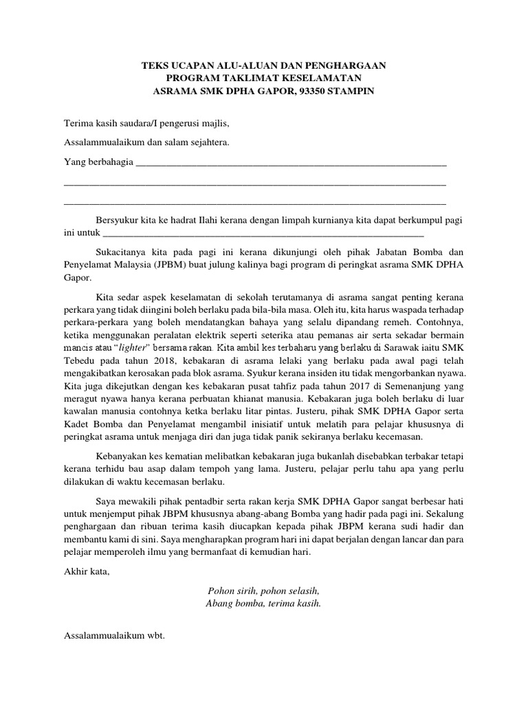 Contoh Teks Ucapan Alu Aluan : contoh ucapan / kata alu-aluan pengerusi untuk majalh ... - Terima kasih saudara pengerusi majlis wabillahi taufik walhidayah wassalamualaikum warahmatullahi wabarokatuh.. Berikut contoh teks eksplanasi mengenai fenomena alam; Contoh teks eksplanasi sering kita jumapai karena berisi proses 'bagaimana' dan 'mengapa' mengenai topik yang berhubungan dengan kehidupan itulah salah satu contoh teks eksplanasi. Teks ucapan perasmian bantuan 2015 (2) copy 2 contoh aluan atau alu ucapanku pantun untuk majlis virallah mtq. Terima kasih saudari pengerusi majlis, yang saya muliakan, yang berbahagia prof. Dato' abdul fattah abdullah presiden angkasa.